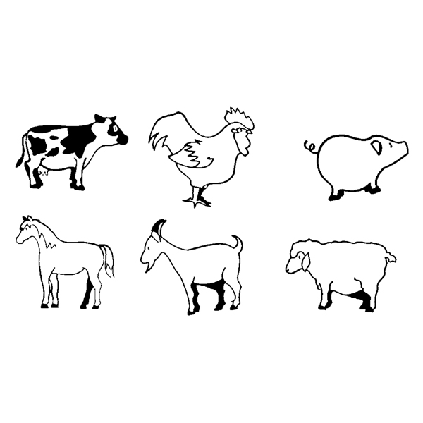 - Inhalt: 6 Motive 1xKuh, 1xPferd, 1xHahn, 1xFerkel, 1xSchaf und 1xZiege
