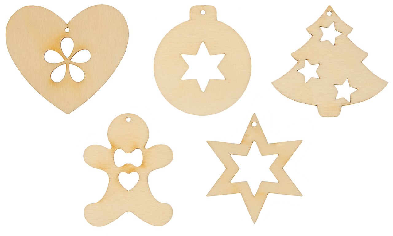 - Lieferumfang: 15 Weihnachtsmotive (z.B. Herz, Stern, Tannenbaum, Kugel u.v.m.) mit Bändchen zum Aufhängen.