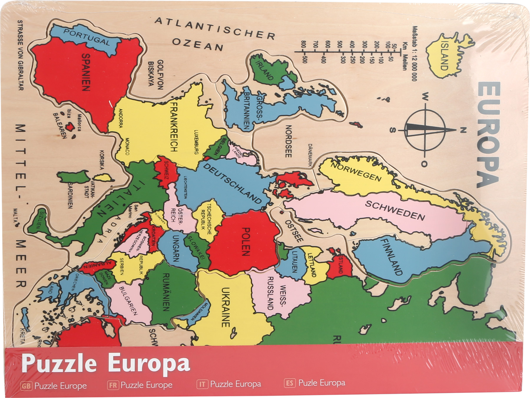 Wo liegt Spanien? Und wo befindet sich Schweden? Mit diesem Puzzle können sich Kinder dieses Wissen selbst erarbeiten bzw. zusammensuchen. Die unterschiedlichen Farben der einzelnen Länder helfen ihnen dabei. Damit wird ganz spielerisch geografisches Wissen vermittelt.