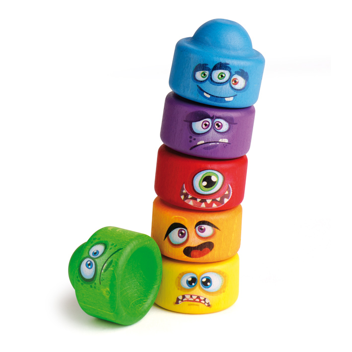 Sechs niedliche Monsterchen wollen gestapelt werden. Die fröhlichen Farben und unterschiedlichen Gesichter laden direkt zum Spielen ein. Durch die besondere Ausformung der Bausteine, ist das mittige Übereinanderstapeln kinderleicht. Aber richtig stabil will der Turm nicht stehen - so wackeln die frechen