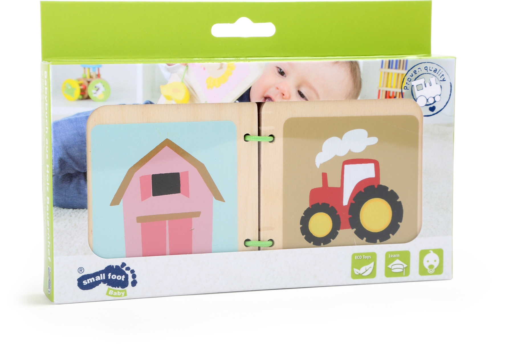 Dieses kleine Buch wird zu einem langlebigen Begleiter des Kindes, denn es ist aus stabilem Holz gefertigt. Pferd, Schaf, Hühnchen und Kuh werden so zu treuen Spielgefährten. Es ist farbecht und speichelfest.