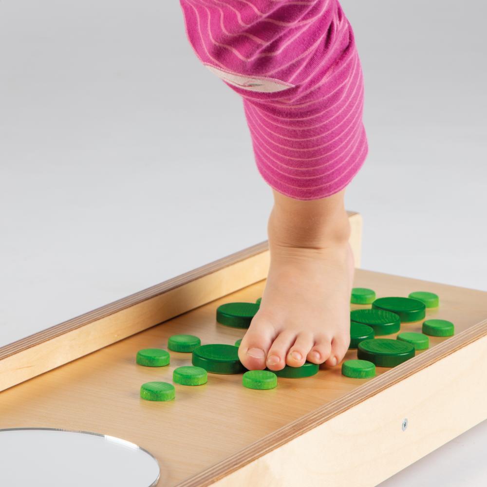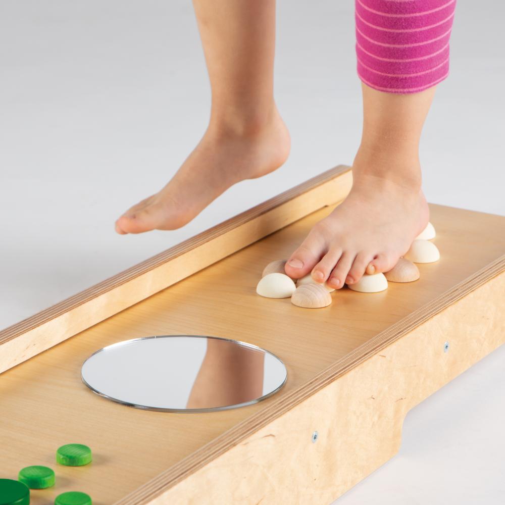 Endlich wieder barfuss laufen - wie am Strand! So soll sich das Brett mit den unterschiedlichen Materialien anfühlen und Füße und Fußsohlen sensibilisieren. Das Brett dient zur Entwicklung der Fußsensorik. Unsere kürzeren Balancierbretter sind auch für kleinere Räume bestens geeignet.