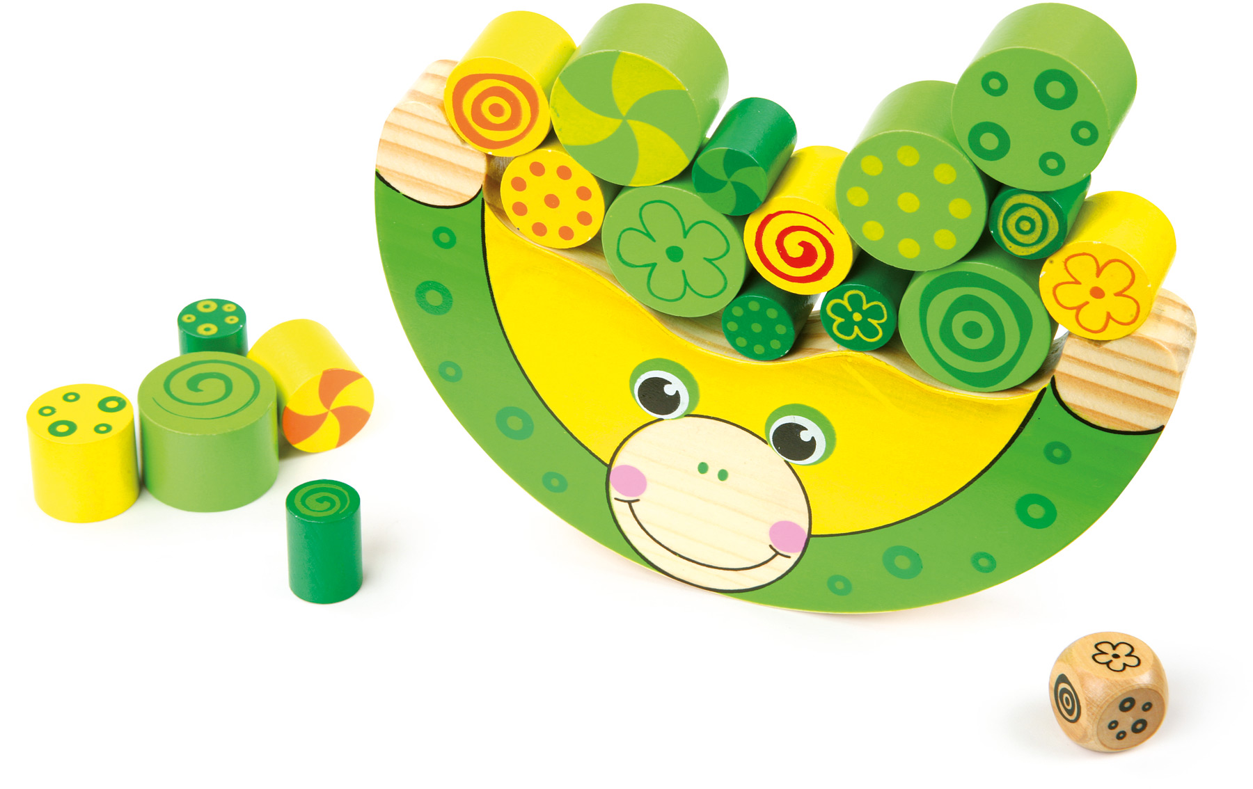 Ganz vorsichtig sollen hier die farbigen Steine auf die Balancierwippe gestapelt werden. Doch aufgepasst! Wer wackelt muss von vorn anfangen. Der kleine Würfel zeigt an, welcher Stein als nächster gelegt werden soll. Ein Spiel, welches nicht nur die Ausdauer und Konzentration fördert, sondern auch die Auge-Hand-Koordination. Aufgrund seiner Größe ist es hervorragend für unterwegs geeignet.