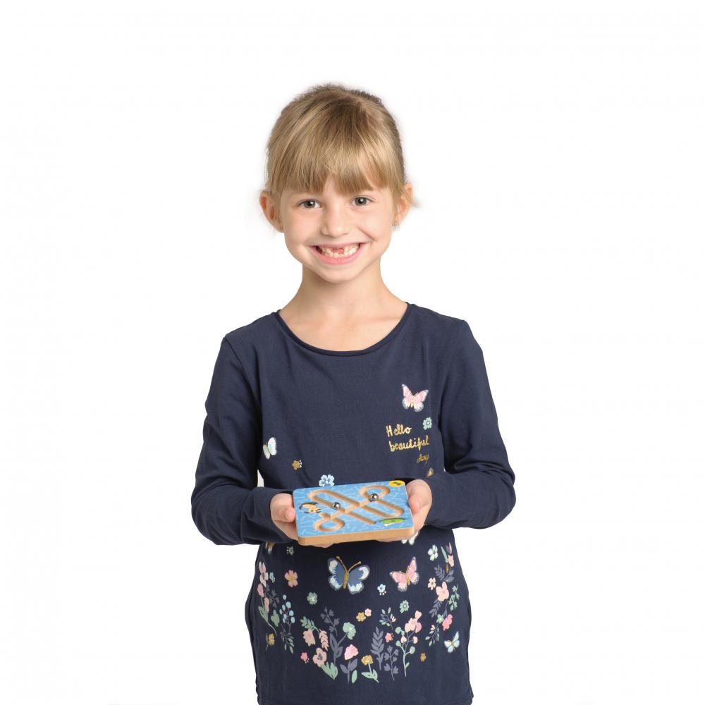 Der kleine Hund will unbedingt zum seinem Lieblingsknochen. Mit dem niedlichen Handbalancierspiel können motorische Fähigkeiten trainiert und verfeinert werden. Um die Kugel vom Startpunkt zum Ziel zu bekommen, muss man Geschicklichkeit und Geduld kombinieren.