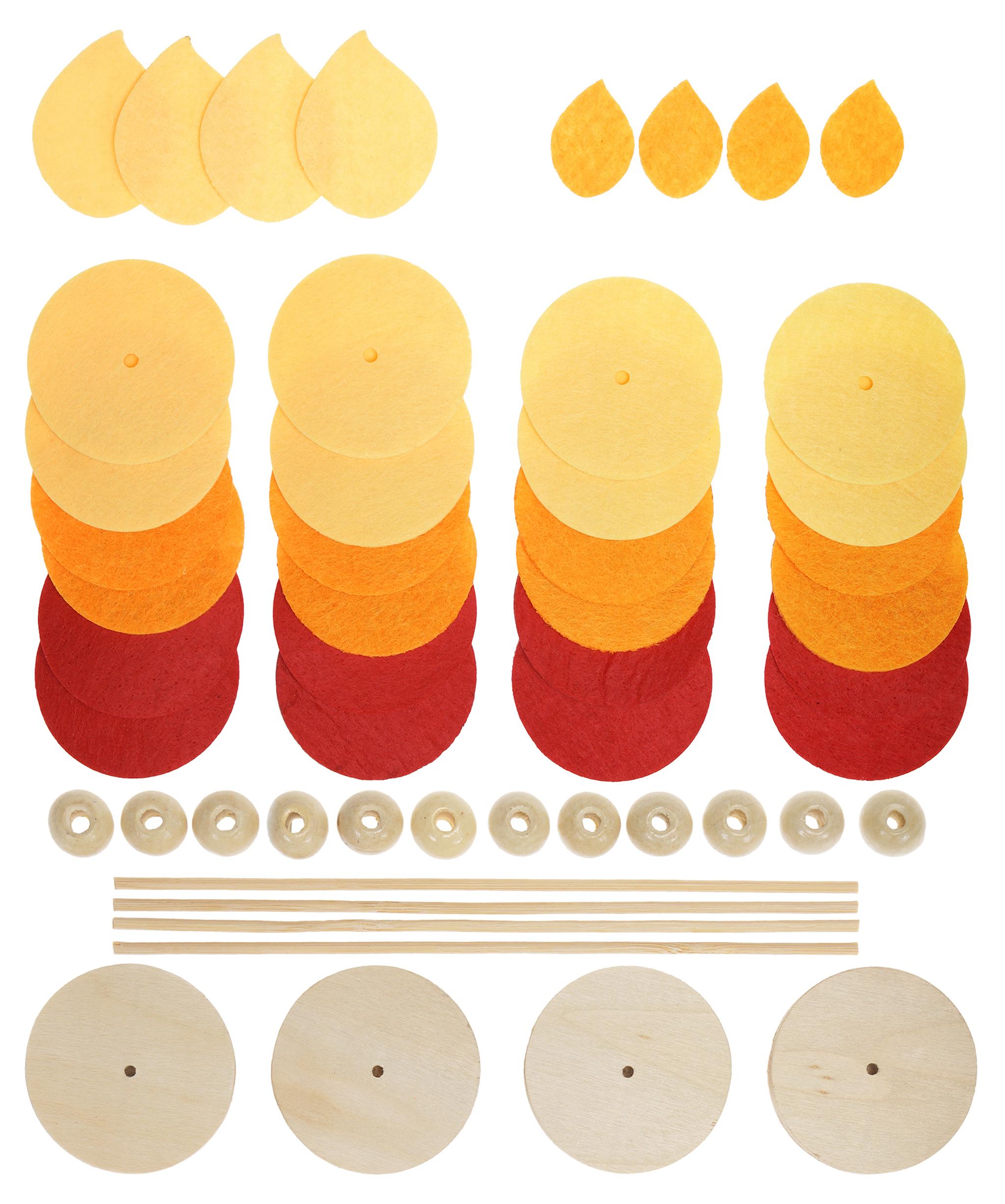 Das 64-tlg. Set besteht aus Filzscheiben und Holzkugeln, die einfach auf einen Stab aufgereiht und auf den Standfuß gesteckt werden.