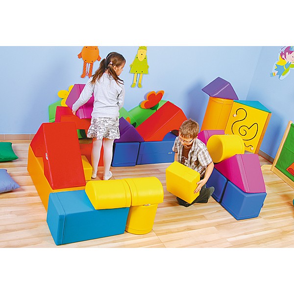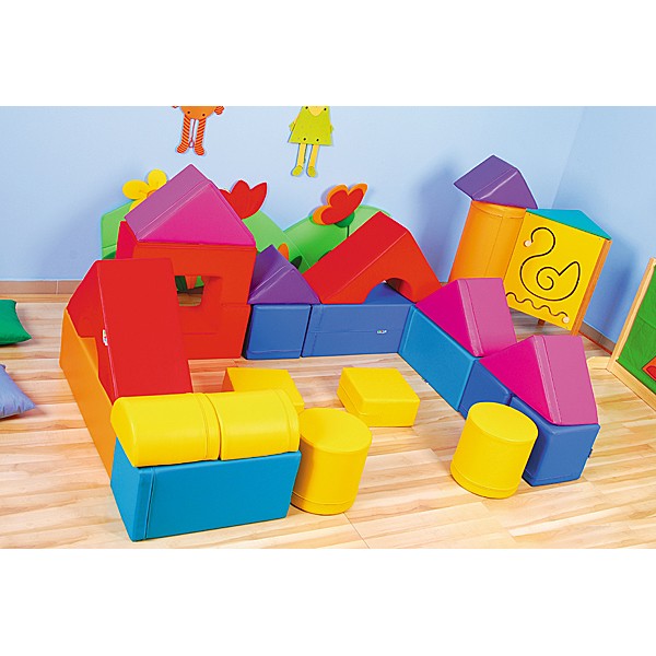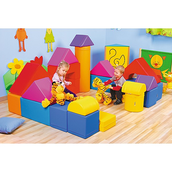 Die Bausteine können zu Hindernisbahnen oder verschiedenen Bauwerken zusammengefügt werden.
