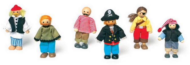 Diese 6-teilige Piraten-Familie ist die optimale Ergänzung zu Puppenhäusern, Fahrzeugen und Puppenmöbeln.