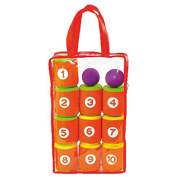 Inhalt: 10 Dosen und 2 Bälle in einer Tragetasche.