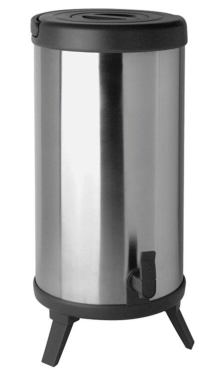 Edelstahl, tropffreier Hahn, Tragebügel und ausklappbare Füße aus schwarzem Kunststoff PP, Ø23cm, Restwärme nach 6 Stunden 80°C,