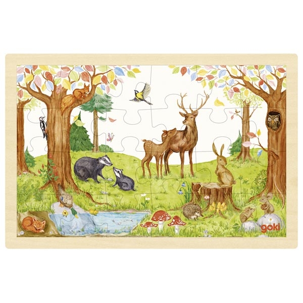 wenn dieses Puzzle zusammengebaut ist, sieht man die Tiere auf einer Lichtung.