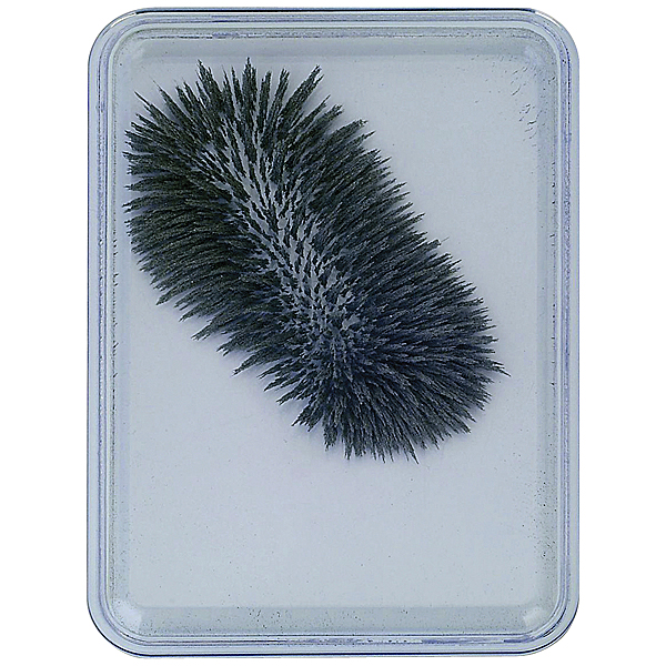 Faszinierendes Experiment ... Sobald Sie mit einem Magneten an der Unterseite der Box entlang fahren, richten sich die Eisenpulverspäne entsprechend dem Magnetfeld aus. Ohne Magnet.