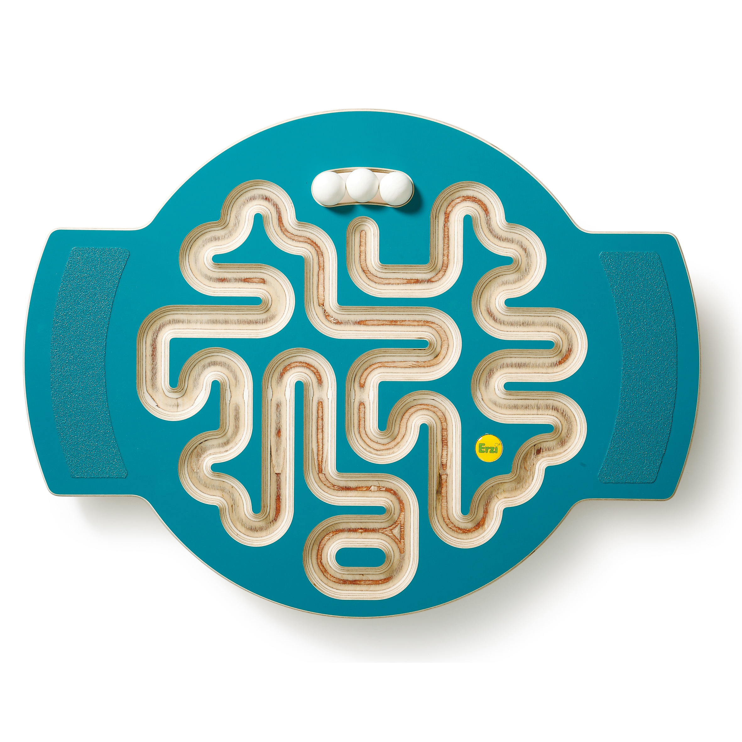 Erzi-Trackboards kombinieren Spiel, Spaß und Bewegung. Ausgestattet mit rutschfesten Trittflächen können Kinder und Erwachsene sich auf diese Balancierscheibe stellen und die Kugeln entlang der Spur ins Ziel bringen. Der flexible und rutschfeste Wippfuß an der Unterseite des Trackboards bietet die entsprechende Sicherheit beim Balancespiel. Der integrierte Tragegriff dient zusätzlich als Kugelhalterung.