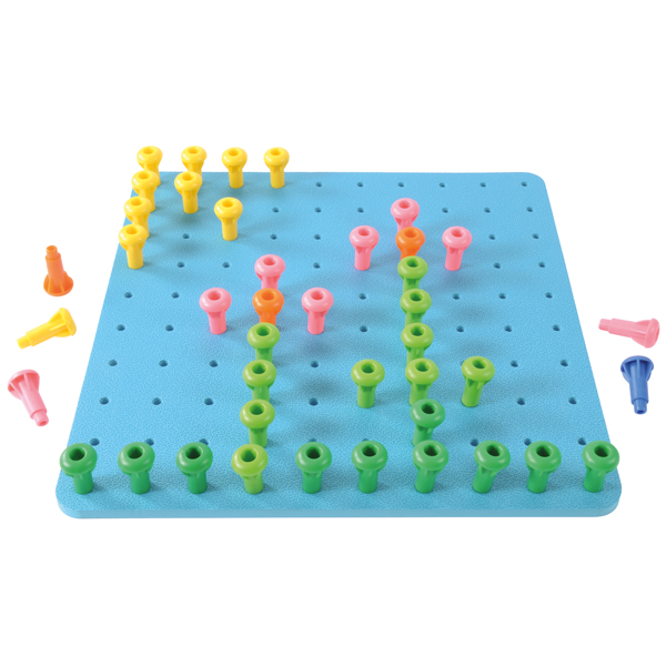 ... Das Stecken der gut greifbaren Stifte in das Soft-Board stärkt die Finger- und Handmuskulatur. Die Stifte können auch als "Doppeldecker" übereinander gesteckt werden. Anhand der 24 Vorlagenkarten mit verschiedenen Schwierigkeitsgraden können die Wahrnehmung, Links-Rechts- und Auge-Hand-Koordination gefördert werden.