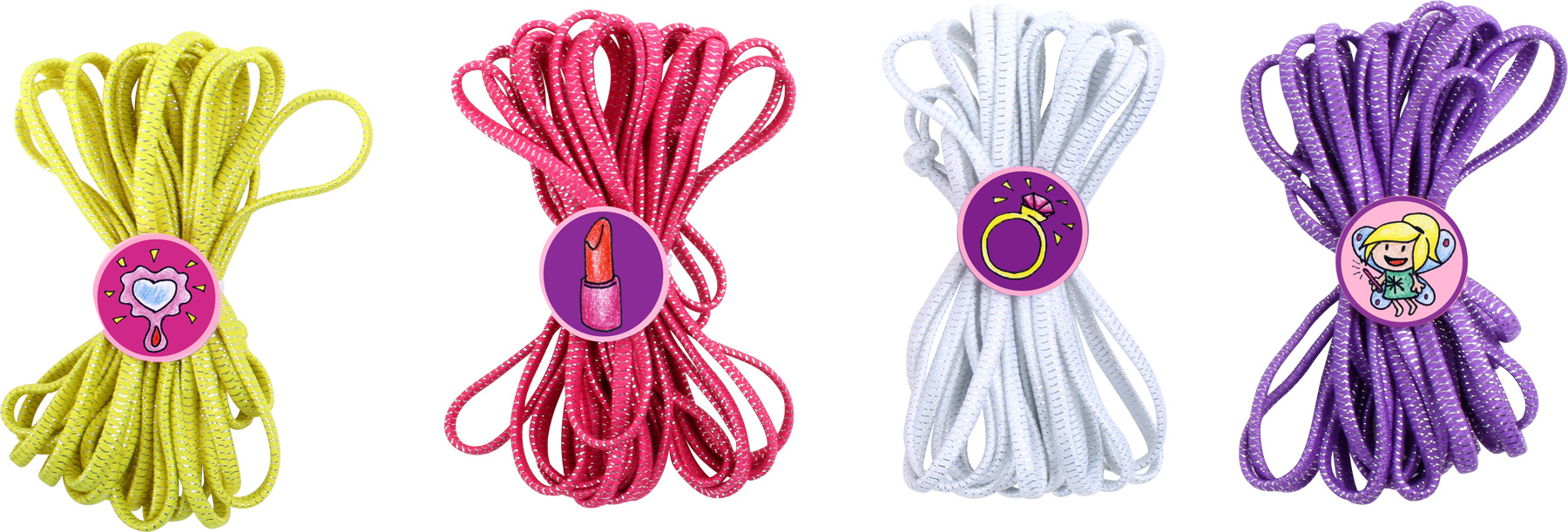 Ein altbekanntes Hüpfspiel, das jeder kennt und überall mit hingenommen werden kann. Ob zu Zweit oder in der Gruppe, spaßig ist es allemal. Auch als Mitbringsel für Kindergeburtstage geeignet. Mit Glitzereffekt in vielen bunten Farben. Silberne und farbige Bänder durchziehen das elastische Band und die bunten Bildmotive sind ein echter Hingucker!