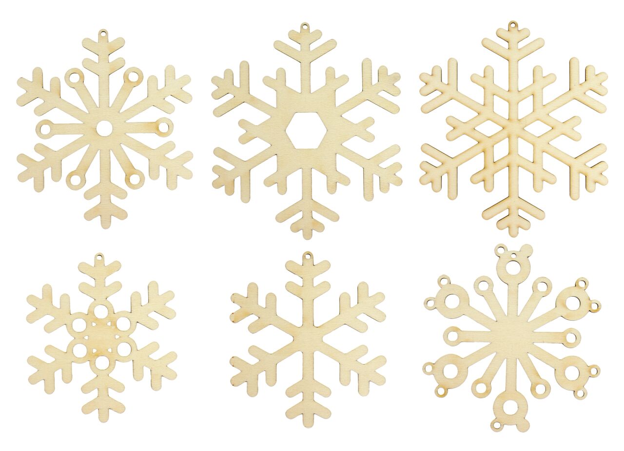 - Lieferumfang: 6 Schneeflocken unbemalt, inklusive Bändchen.