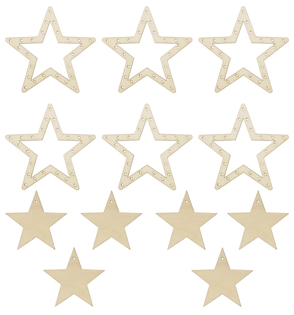 - Inhalt: 6 Holzanhänger „Sternenmobile“ mit 3 Fädelsternen und 3 kleinen Sternen (ohne Fädelschnur)