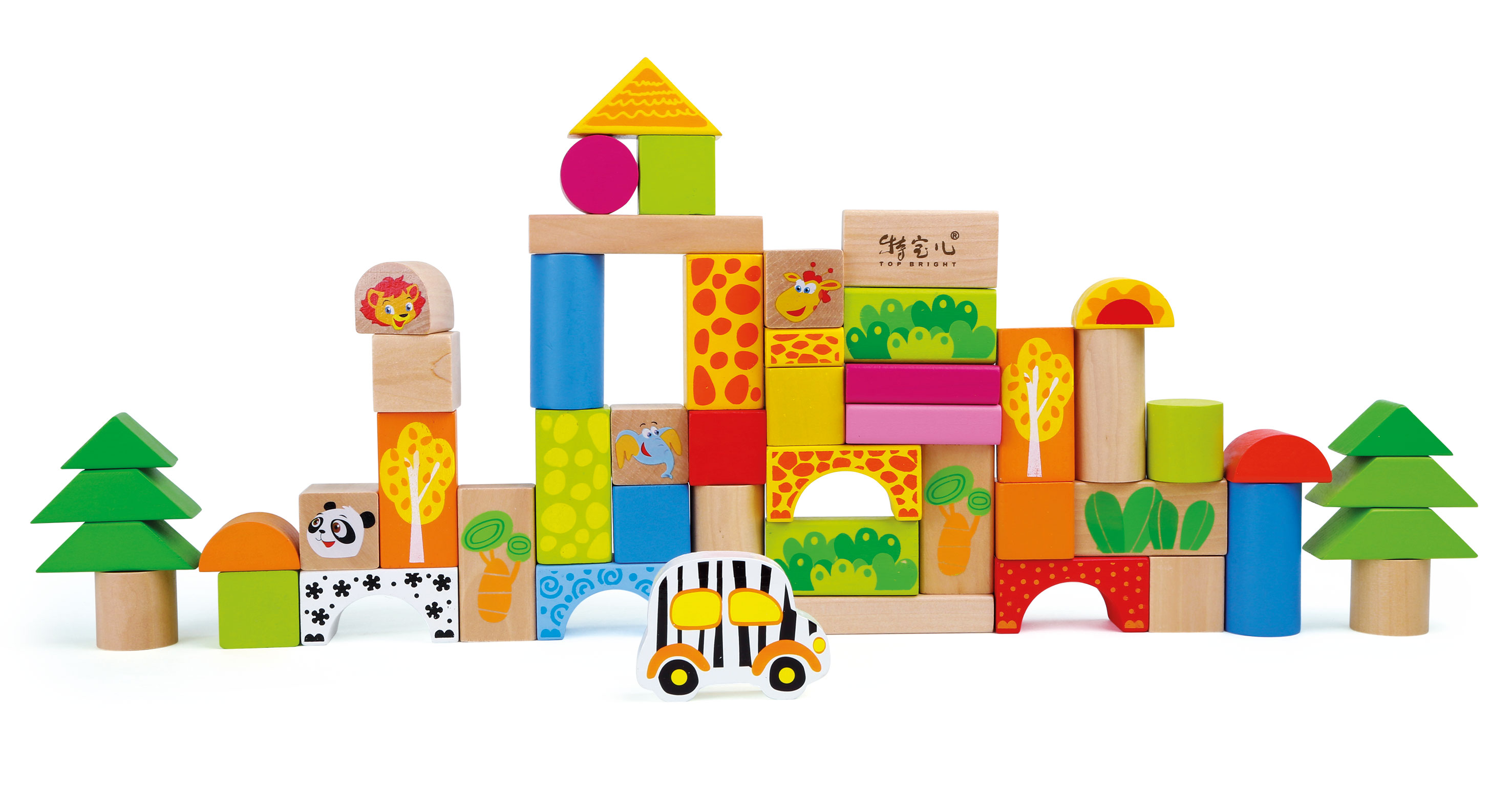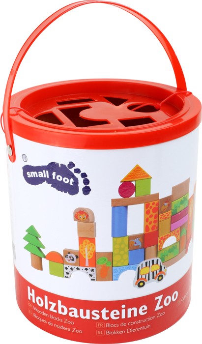 Diese bunten Holzbausteine versprechen viel Bauspass! Durch ihr tierisches Design lassen sich unterschiedliche Tiere zusammensetzen und damit ein kleiner Zoo errichten. Vierecke, Dreiecke, Halbkreise und Walzen fordern bei Kindern spielerisch Ausdauer, Kreativität und feinmotorische Aktivitäten heraus. Aufräumen lassen sich die Steine in der mitgelieferten Papptrommel, deren Deckel mit verschiedenen geometrischen Ausschnitten bestückt ist. So können die einzelnen Bausteine zugeordnet werden, wobei Konzentration und räumliches Vorstellungsvermögen gefragt sind.