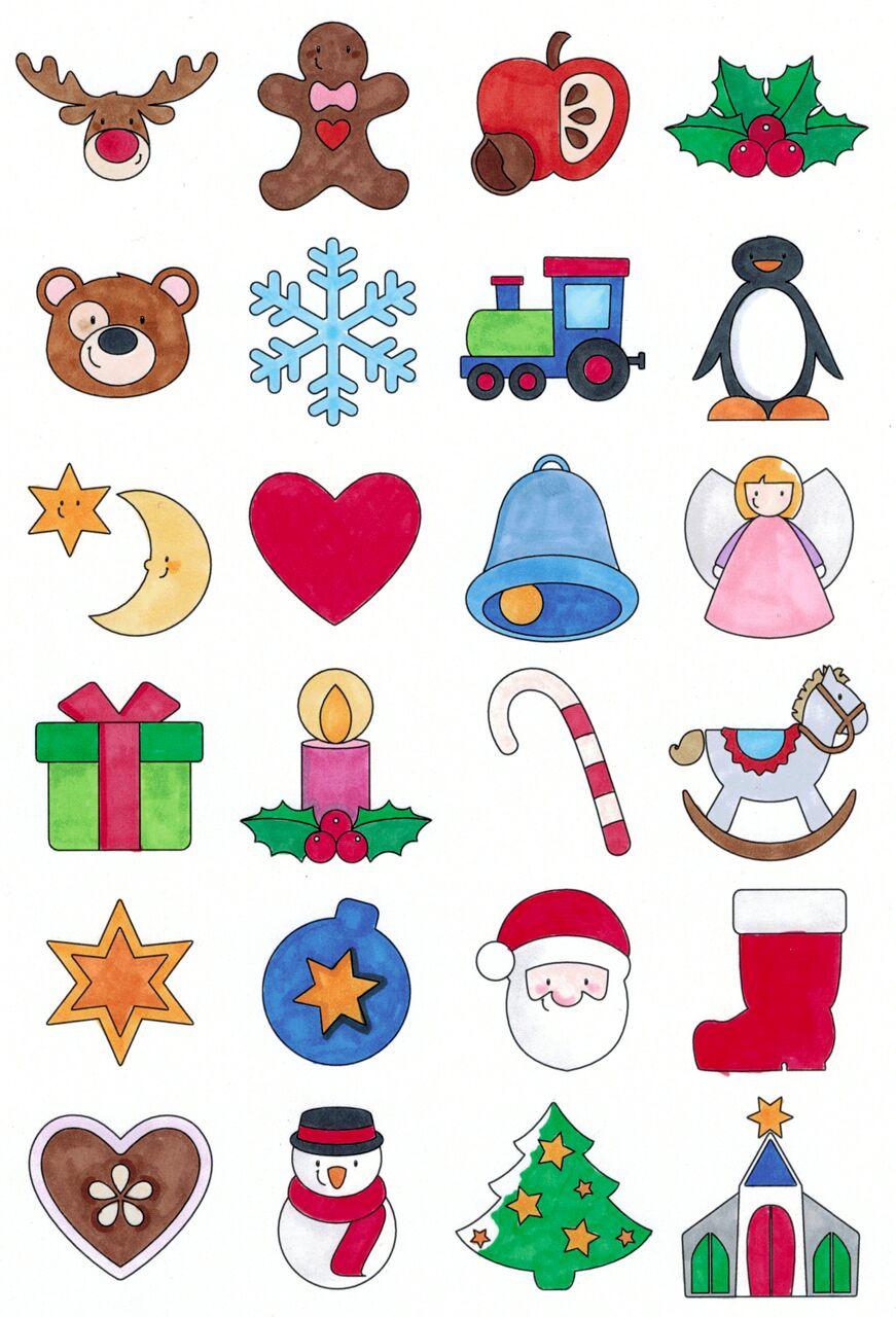 Mit den 24 Stempeln könnt ihr gemeinsam einen Adventskalender gestalten, z.B. mit kleinen Taschen oder Schachteln. Oder: Die Stempel können selbst den Adventskalender fu?llen - eine tolle Alternative zu Su?ßigkeiten.