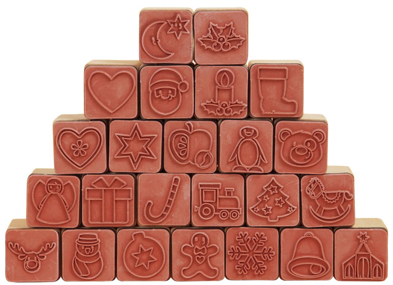 Inhalt: 24 Holzstempel mit den abgebildeten Motiven.