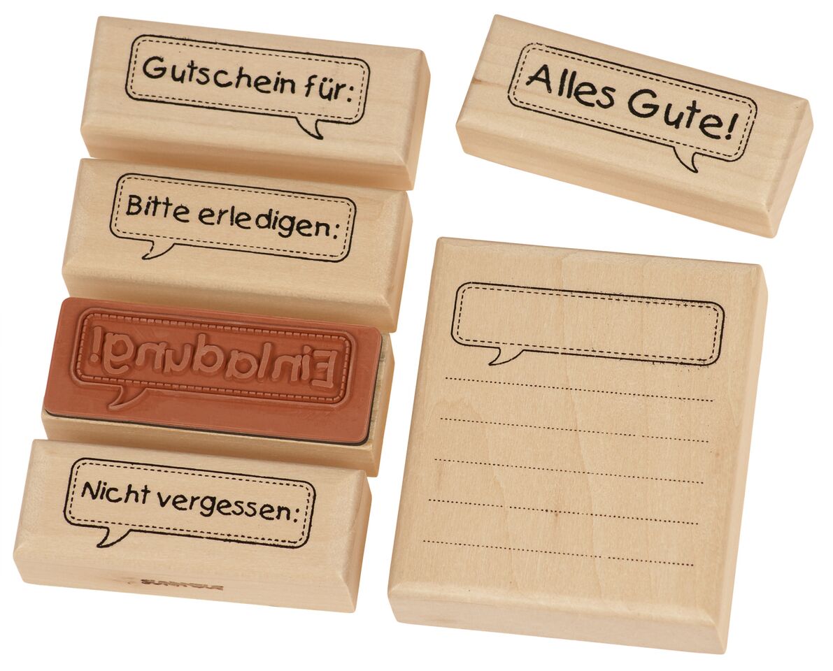 werden im Nu mit diesen coolen Stempeln gezaubert. Auch ein nu?tzlicher Blankostempel zum selbst beschriften ist im Set enthalten.