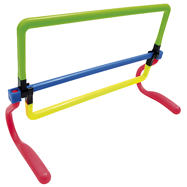 Für große und kleine Hüpfer... ist diese Hürde in drei Höhen verstellbar: 16, 23 und 29 cm. Die Bügel können durch Drehen als senkrechtes Höhen-Hindernis und waagrechtes Weiten-Hindernis eingestellt werden. Platzsparende Aufbewahrung durch Eindrehen der Beine.