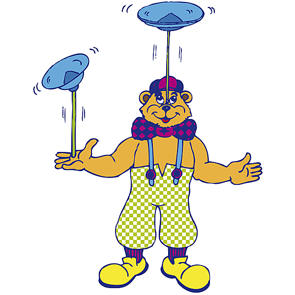 Die Tellerkante an die Stabspitze hängen, den Stab kreisrund bewegen und schon bald dreht der Kunststoffteller seine eigenen Runden. Mit Vertiefung in der Mitte. Inklusive Stab.