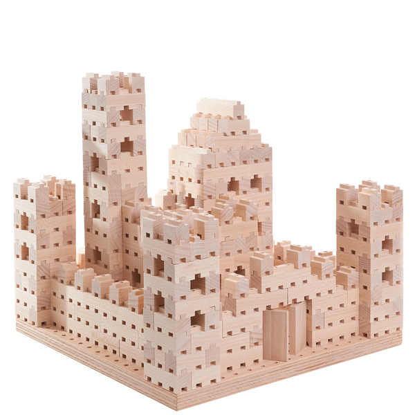 Aus 360 Bausteinen in vier Größen können Kinder beeindruckende Bauwerke konstruieren ... z.B. eine Ritterburg. Fenster entstehen durch Auslassen von Mauerwerk und anschließendem Überbauen. Die kleinsten Steine eignen sich toll für Zinnen und Türmchen. Ein Tor gewährt den Einlass. Vertikale Stäbe in zwei Längen verbinden die Steine und geben den Mauern Halt. Mit jeder Konstruktion lernen die Kinder hinzu, verbessern ihre Konzentration, entwickeln eine vorausschauende Denkweise und Feinmotorik.