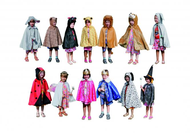 13 verschiedene Kostüme verwandeln Kinder in ihre Wunschfiguren.