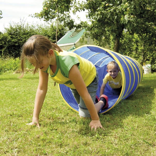 ... Plopp und der Kriechtunnel hat sich dank Federmechanismus auf seine gesamte Länge entfaltet. Durch zwei Klettlaschen ist er schnell wieder platzsparend aufgeräumt (ca. 5cm breit). Er besitzt einen 25 cm breiten transparenten PVC-Streifen (phthalatfrei) der das Innere des Tunnels erhellt. Kinder brauchen sich also nicht fürchten, denn man kann nach außen sehen. Für Garten, Schwimmbad, Strand bestens geeignet. Farbe: Blau.
