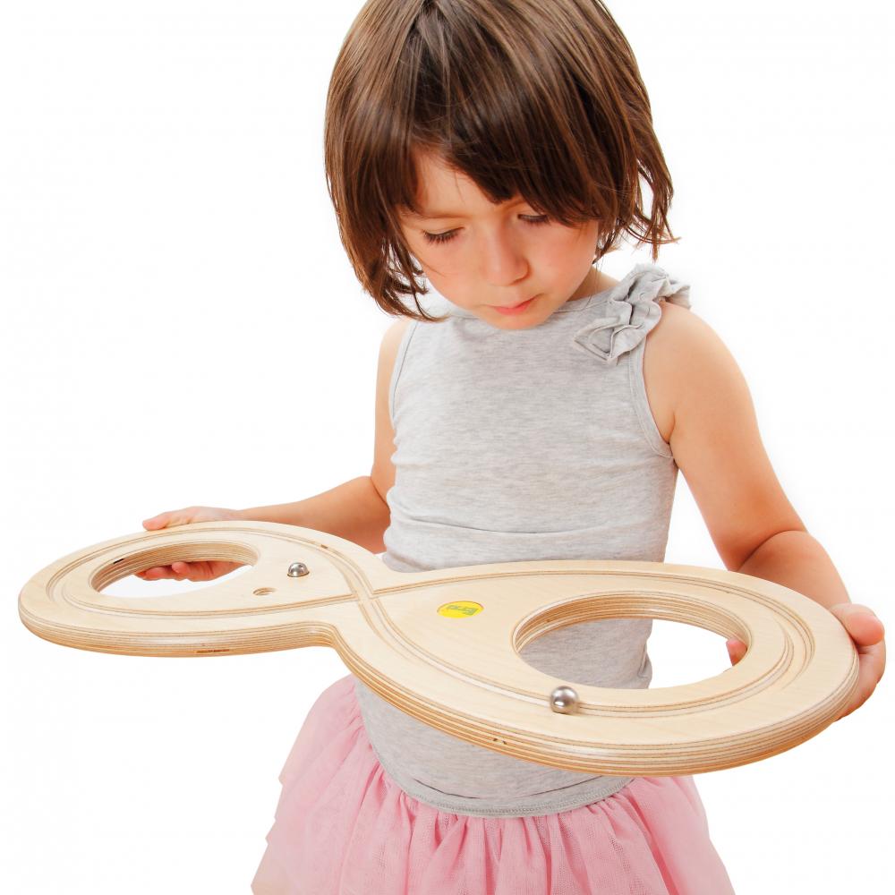 Ob auf der Spur in Form einer 8, oder auf der Innenspur in Kreisform - die Kugel läuft auf Ihrer Bahn. Beide Varianten sollten aber auch unterschiedlich gespielt werden, sonst verlässt die Kugel unfreiwillig ihre Bahn!