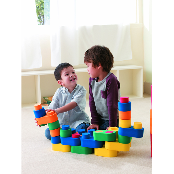 ... Die ansprechenden Farben haben einen hohen Aufforderungscharakter. Einzel- und Doppelsteine in Verbindung mit den herausnehmbaren Innenstopfen können zu stabilen, standfesten Objekten verbaut werden. Inhalt: 25 Doppelbausteine, 10 Einzelbausteine, 60 Innenstopfen.