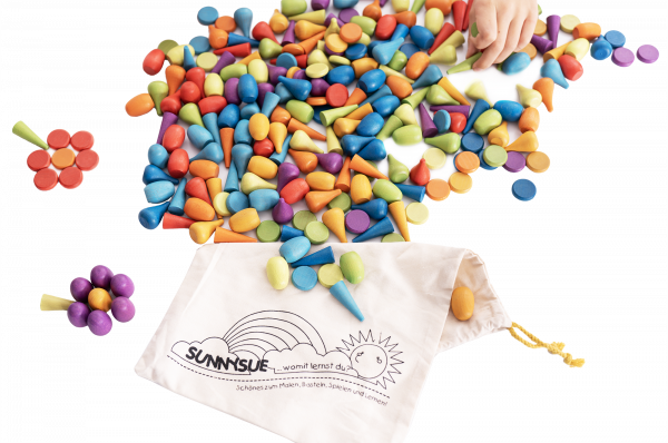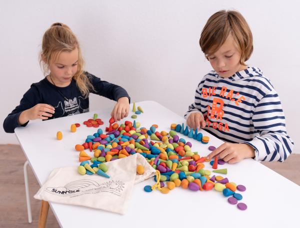 Loose Parts Regenbogen-Legeteile 256 Teile für die Feinmotorik