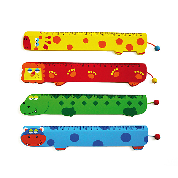 Tierisches Meßvergnügen aus Holz!... Ab sofort macht jede Hausaufgabe Spaß! Denn nun hilft dir das Nilpferd, das Krokodil, der Löwe oder die Giraffe beim Abmessen. Die abgerundeten Kanten dieses lustigen Lineals, sorgen für eine angenehme Handhabung und mehr Sicherheit. Zusätzlich verleihen Füße und Schwänzchen diesem Tierlineal sein ganz besonders Design. 4 verschiedene Motive verfügbar. Lieferung nach Lagervorrat.