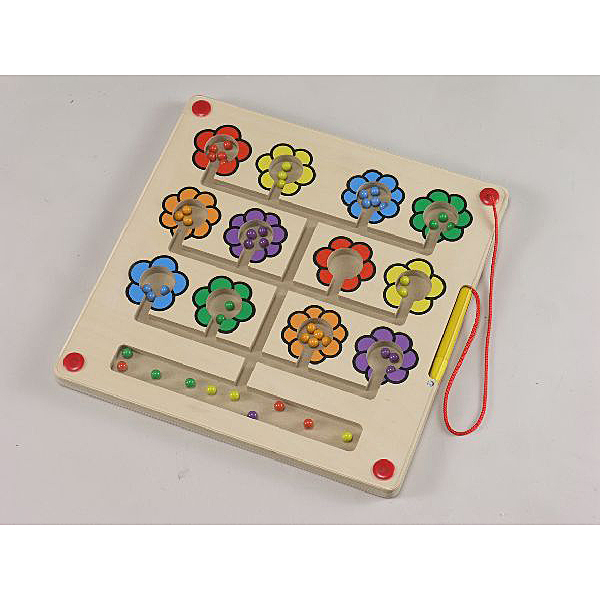 Farben, Zählen und wie man den Stift hält... lernen Vorschulkinder ganz spielerisch mit diesemBoard. Auf der Blumenwiese werden die bunten Metallkugeln mit dem Magnetstift zu den Blüten in gleicher Farbe geführt. Dank der Plexiglas-Abdeckung fallen die Kugeln nicht heraus.