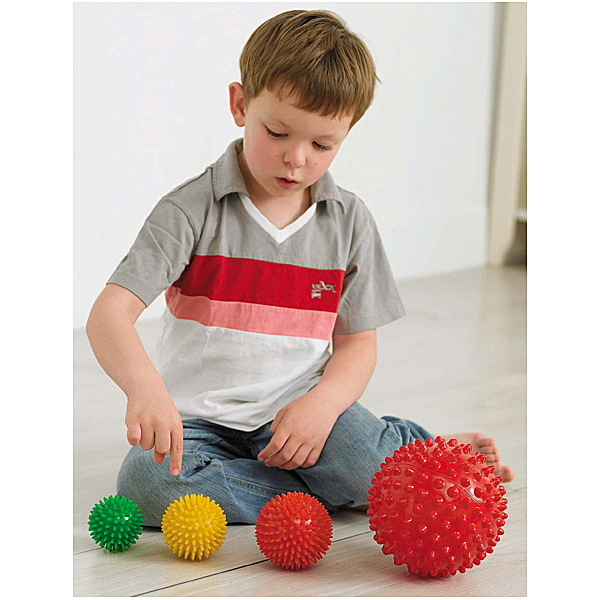 Mit Luft gefüllter Noppenball. Er dient zum Stimulieren des Tastsinns, dem Aufbau der Konzentration und um Emotionen zu stabilisieren.Material: PVC phthalatfrei.Maße: Ø 9 cm.