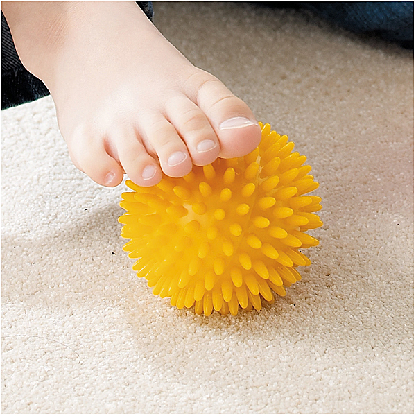 Mit Luft gefüllter Noppenball. Er dient zum Stimulieren des Tastsinns, dem Aufbau der Konzentration und um Emotionen zu stabilisieren.Material: PVC phthalatfrei.Maße: Ø 8 cm.