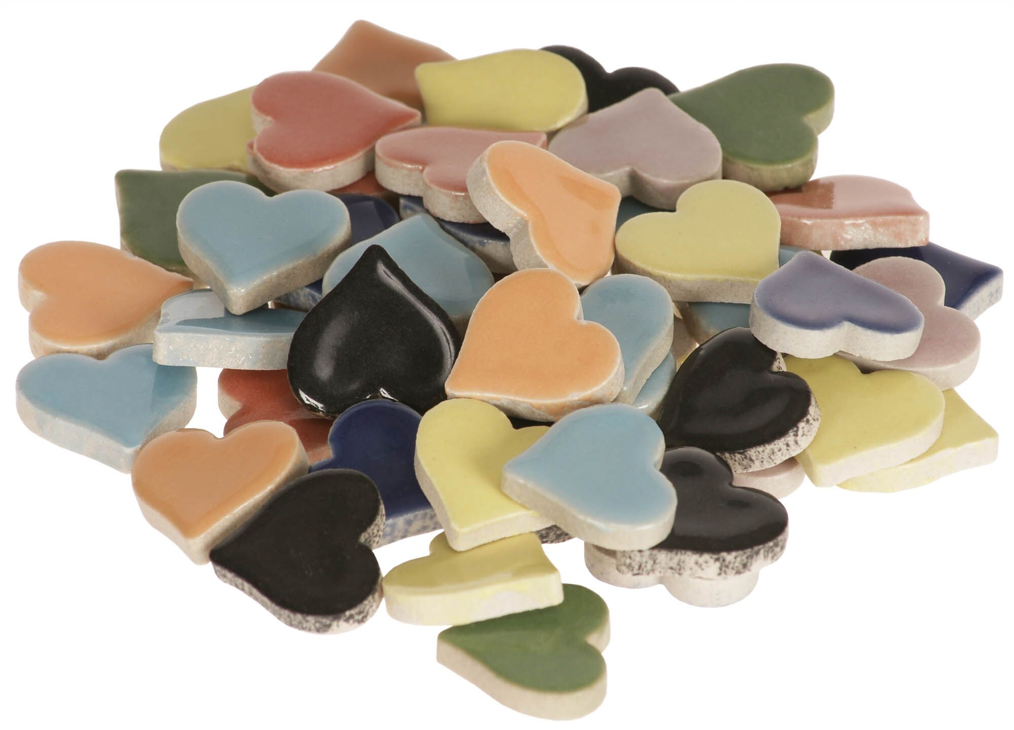 - Inhalt: 100g Mosaiksteinchen „Herzen“ ca. 50 Stück