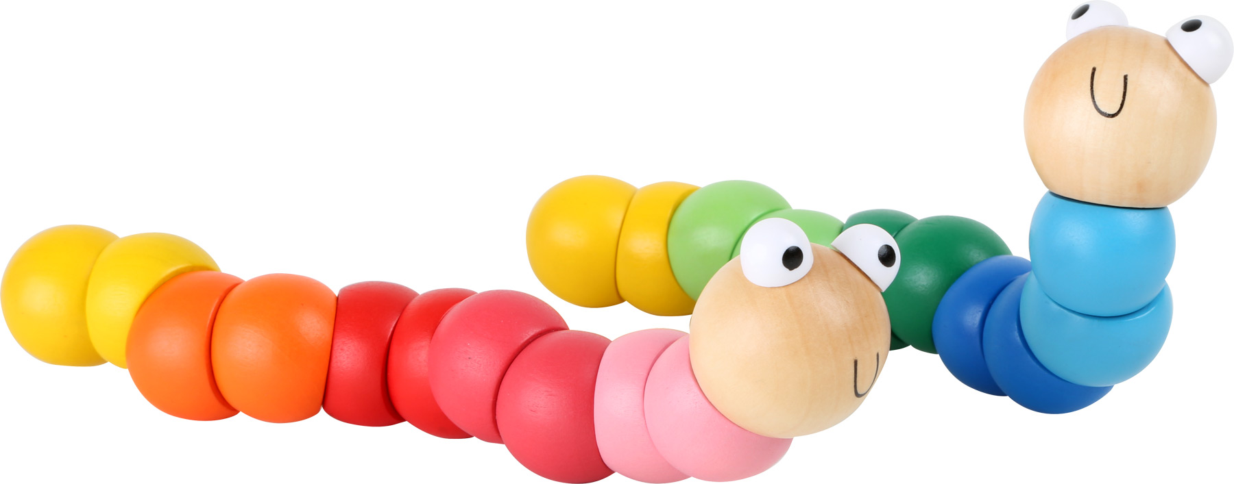 Die bunte Raupe kann durch Hin- und Herdrehen in verschiedene Positionen gebracht werden. Möglich macht das ein starkes Gummiband, welches alle Glieder zusammenhält. Das Drehen fördert nicht nur die Feinmotorik der Kinder, sondern auch das räumliche Vorstellungsvermögen. Das lustige Aussehen lässt sie schnell zum täglichen Begleiter werden.
