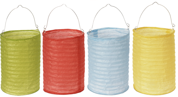 - Inhalt: 4 Papierlampions in den Farben „Blau, Rot, Gelb, Grün“.