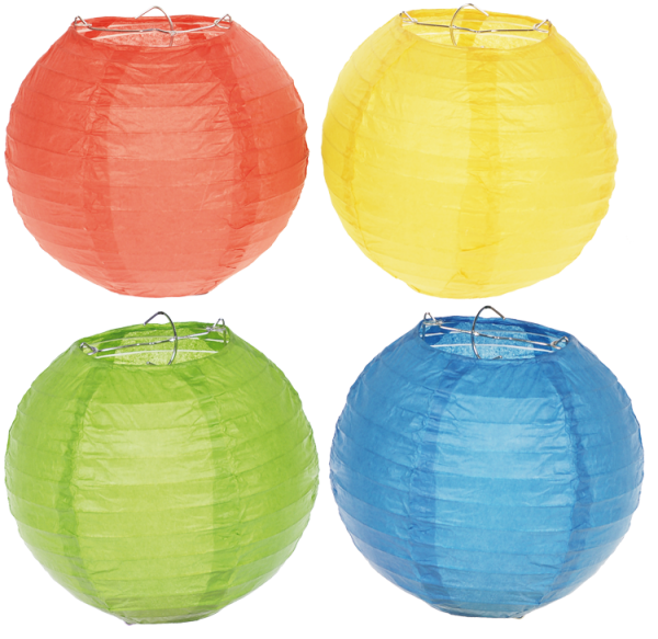- Inhalt: 4 Papierlaternen "Rund - Grundfarben"