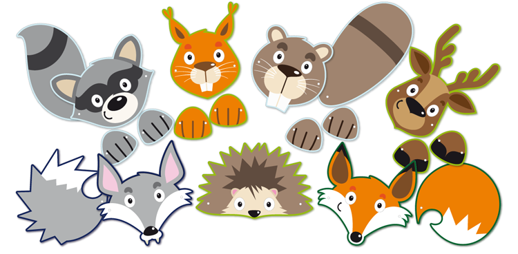 sind diese lustigen Tiermasken in bunt und zum selbst Ausmalen geeignet. Das Tolle daran ist, dass einige Tierchen mit Fu?ßen daherkommen, die sich die Kinder mit einem Gummizug auch u?ber die Hand stu?lpen können. Fuchs, Wolf, Waschbär und Bieber kommen sogar noch mit Schwanz, der an die Hose gehangen werden kann.