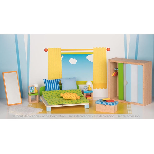 Moderne Puppenmöbel für das Schlafzimmer mit detailverliebten Accessoires. Passend zu allen Puppenhäusern.