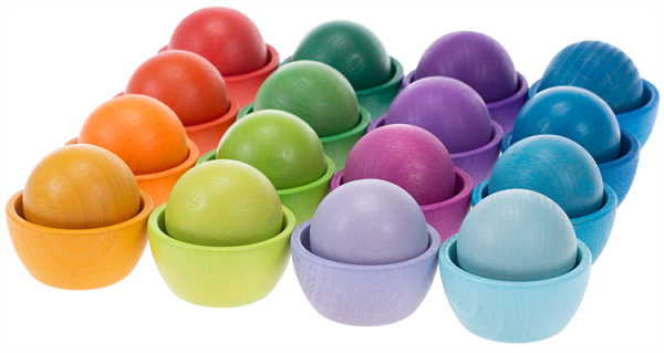 Die 16 Kugeln aus lackiertem Buchenholz sind hervorragend dafür geeignet, dass sich Kinder in Morotik, Farberkennung und deren Zuordnung einüben können. Sie können die Kugeln sehr gut greifen und in die 16 passenden Farbschalen sortieren. Zudem wären die Kugeln eine passende Ergänzung in der Bauecke oder für die Kugelbahn.