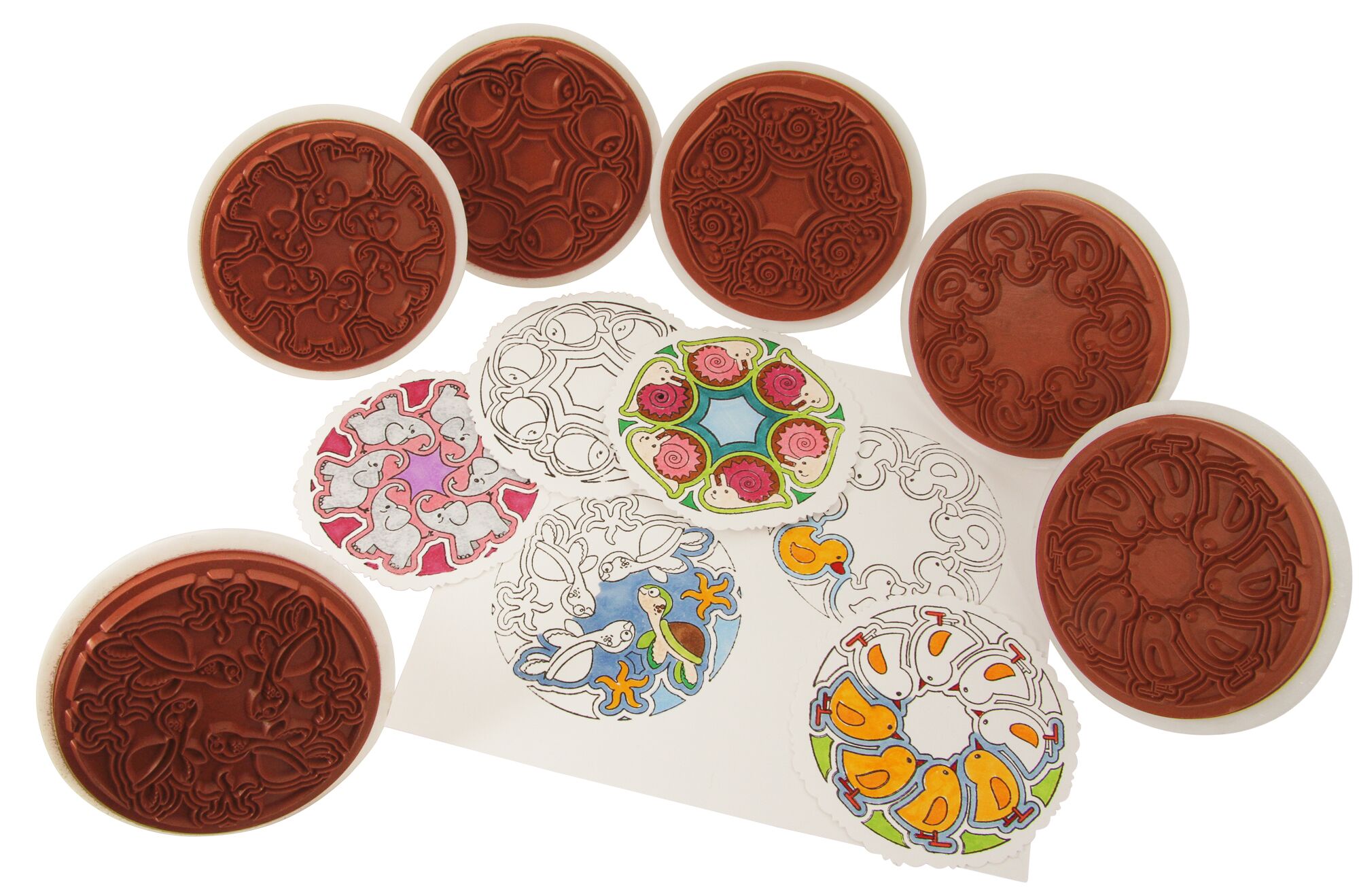 Abstempeln, ausmalen, fertig. Wusstest du: das Gestalten der Mandalamotive fördert deine Kreativität und Konzentration.