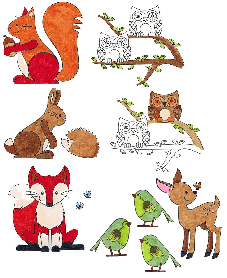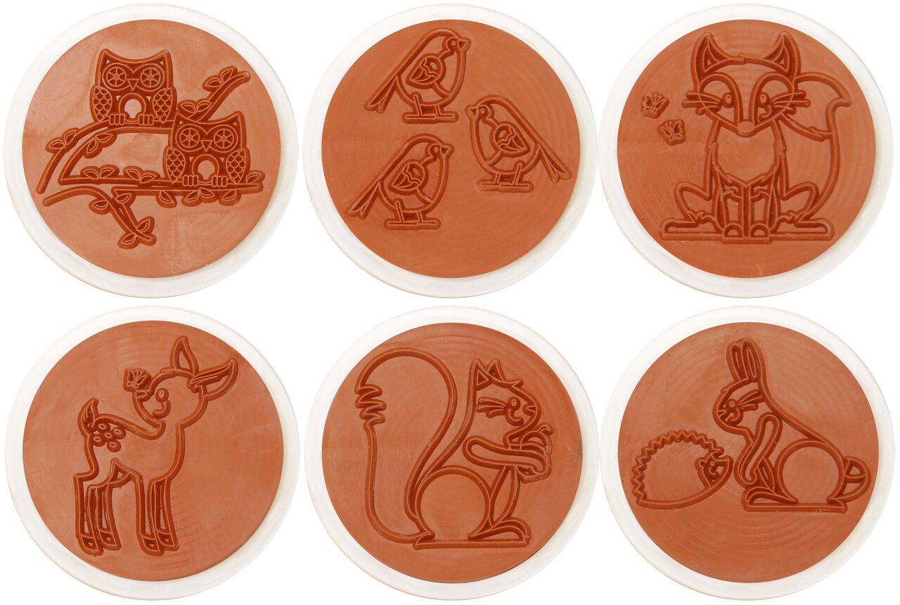 lernst du mit diesen Riesenstempeln kennen. Gru?nfinken, Reh, Eichhörnchen, Fuchs, Uhu, Hase und Igel findest du als Motiv auf diesen extra-großen Stempeln. Basteltipp: Erstelle mit den Figuren tolle Klappkarten oder ein kleines Herbstmobilé. Natu?rlich kannst du die Motive auch einfach nur bunt ausmalen.