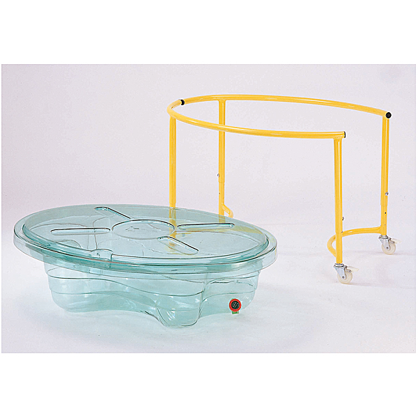 Die höhenverstellbare (44 - 58 cm) transparente Kunststoffwanne besitzt einen Ablaufstopfen für Wasser. Der Deckel kann zum Abdecken oder als Ablageboden einsetzt werden. Das aus Stahlrohr, pulverbeschichtet Gestell hat zwei Rollen zum leichten Transport.