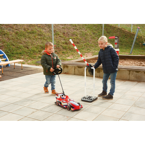 Gibt die Bahn frei ... für Fußgänger und alle Kinder, die auf Rädern unterwegs sind. Die Schranke lässt sich stufenlos von der waagrechten in die senkrechte Position stellen. Sekundenschnell platzsparend zerlegt und wieder zusammengebaut.