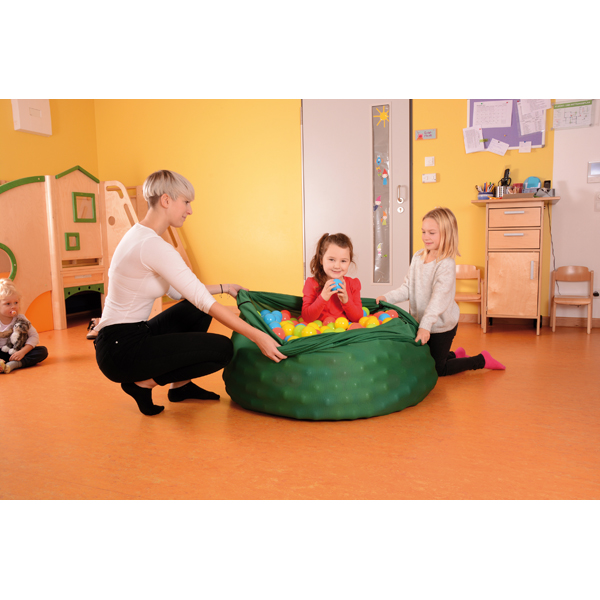 Mobiles Bällebad & Lümmelinsel in einem... Der Sensorik-Sack ist ein wahres Multitalent: als platzsparendes und mobiles Bällebad ermöglicht er Kindern sensorische Erfahrungen zu erleben, die bunten Bälle regen zum kreativen Spielen an... und nach dem Ballbad wird der Sack einfach oben zugezogen und ermöglicht den Kids, darauf zu lümmeln, zu lesen oder auf der kugeligen Oberfläche herumzukrabbeln. Farbe: Dunkelgrün. Waschbar bei max. 30°C.