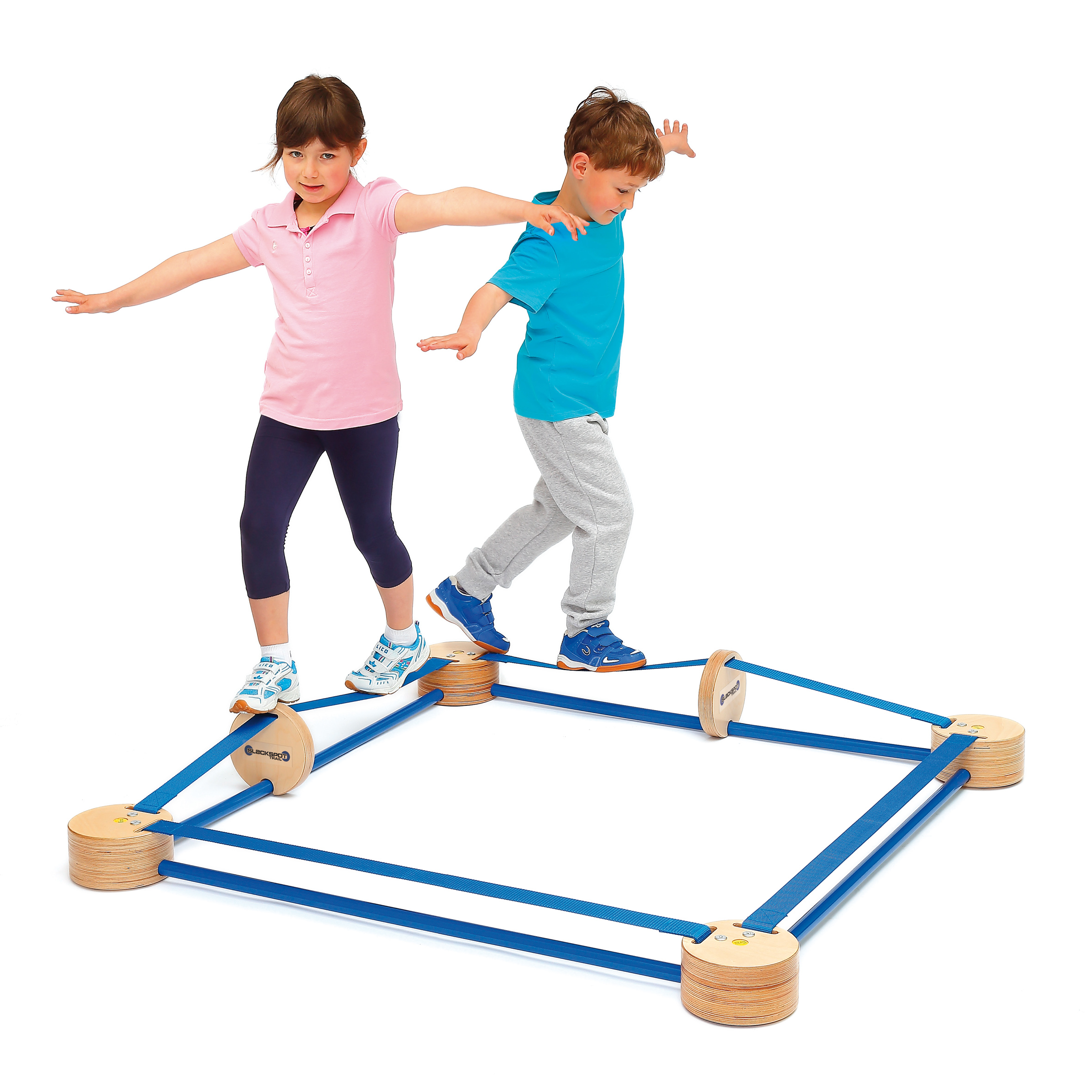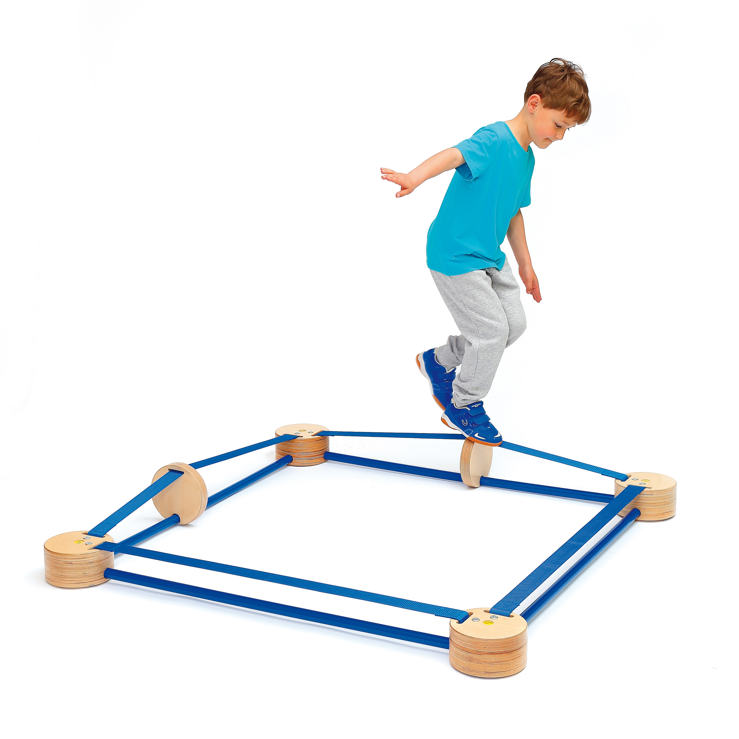Slacklines besitzen einen hohen Aufforderungscharakter und begeistern Jung und Alt. Slackspot von Erzi ist ein innovatives Balance-System für den Indoor-Bereich. Kinder ab einem Alter von bereits drei Jahren finden so den Einstieg in das Balancieren auf einer Slackline. Die insgesamt vier Varianten des Slackspot-Systems ermöglichen die Balance von bis zu vier Kindern gleichzeitig. Die geringe Balancierhöhe von 10 cm sorgt für eine “sichere“ Balance ohne Hilfestellung – ein Fallschutz ist nicht notwendig. Die verstellbare Gurtspannung und Stopperfüße an der Unterseite sind nur einige Features, welche das Produkt auszeichnen. Ob Privat, im Kindergarten, in der Praxis oder in Foyers und Warteräumen - Slackspot benötigt keine zusätzliche Verankerung und lässt sich an vielen Orten integrieren.