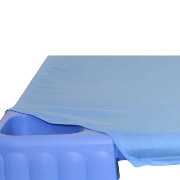 Für mehr Behaglichkeit ... und Hygiene sorgt dieses Baumwoll-Spannlaken. An den Ecken ist ein Gummiband eingenäht. Damit wird das Laken auf der Kinderliege aufgespannt. Die Liegen bleiben mit diesem Spannlaken stapelbar. Farbe: Blau. Waschbar bei 40°
